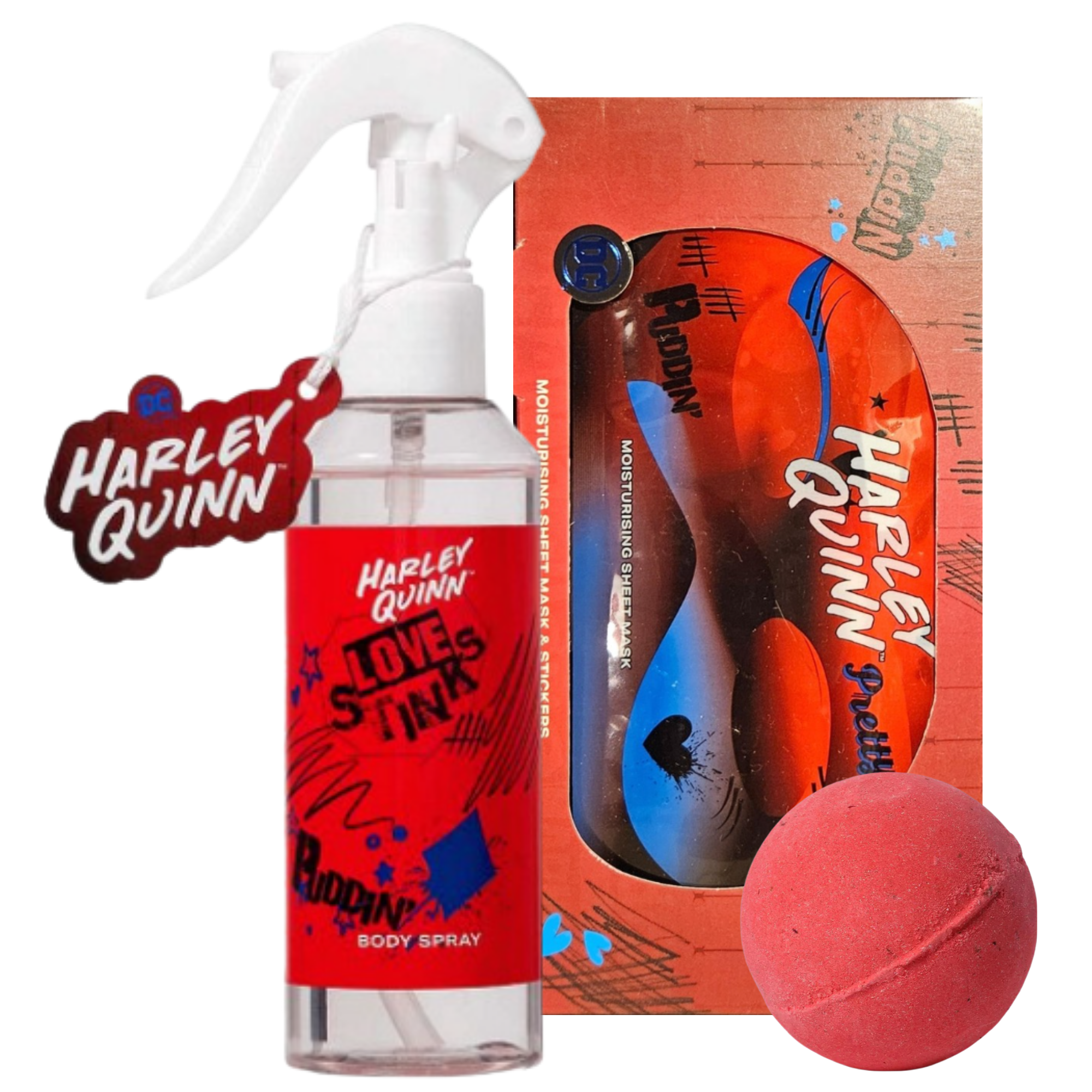 ![]() Harley Quinn Gift SetHarley Quinn giftset, with body spray, fask mask & bath bomb! 1 of 4 sets available.